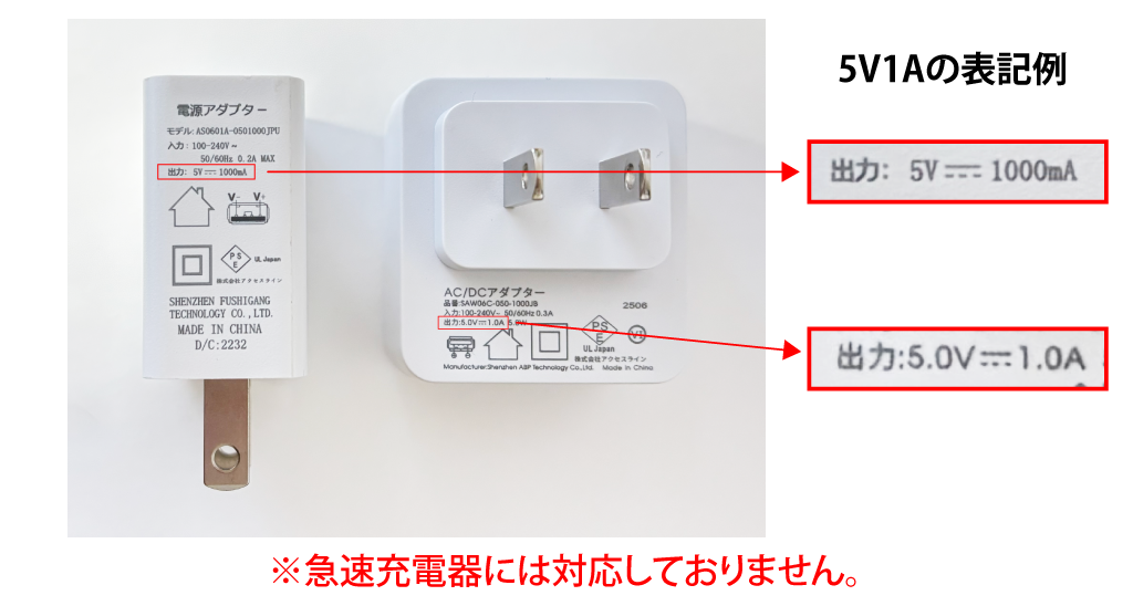 5V1Aの充電器(アダプター)で充電されていますか?